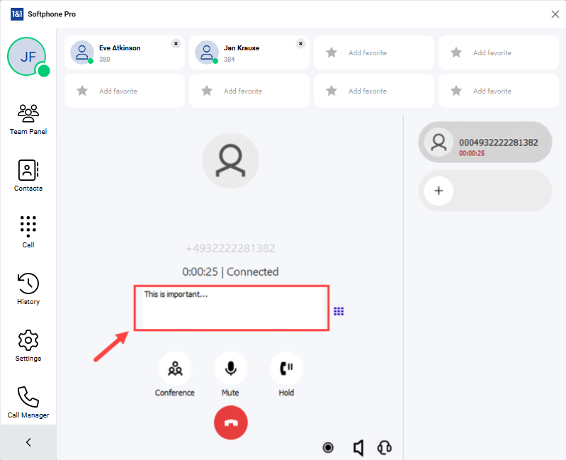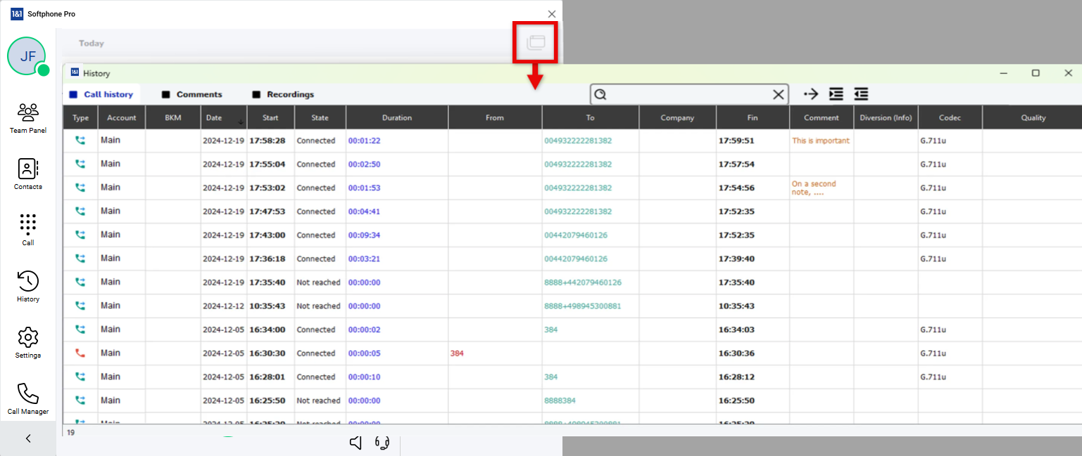 ⇒ As soon as the call is ended, the comment is automatically saved in the call history.