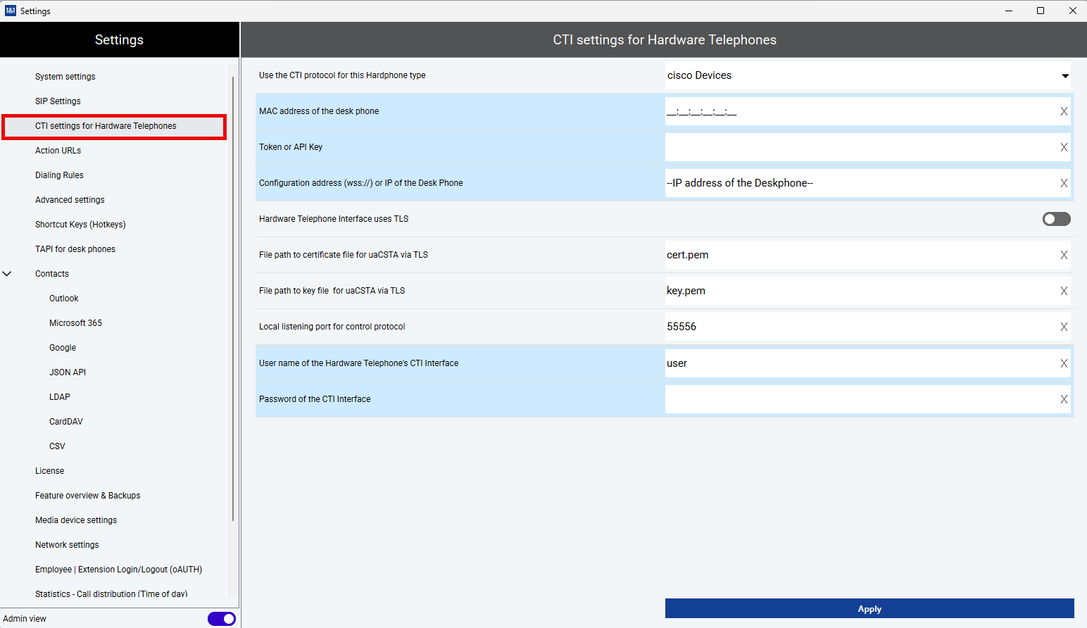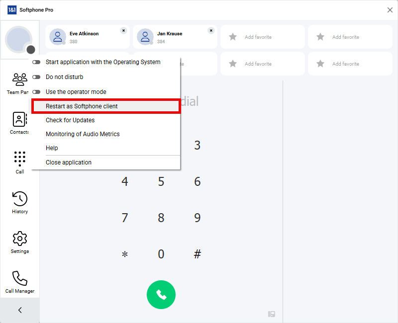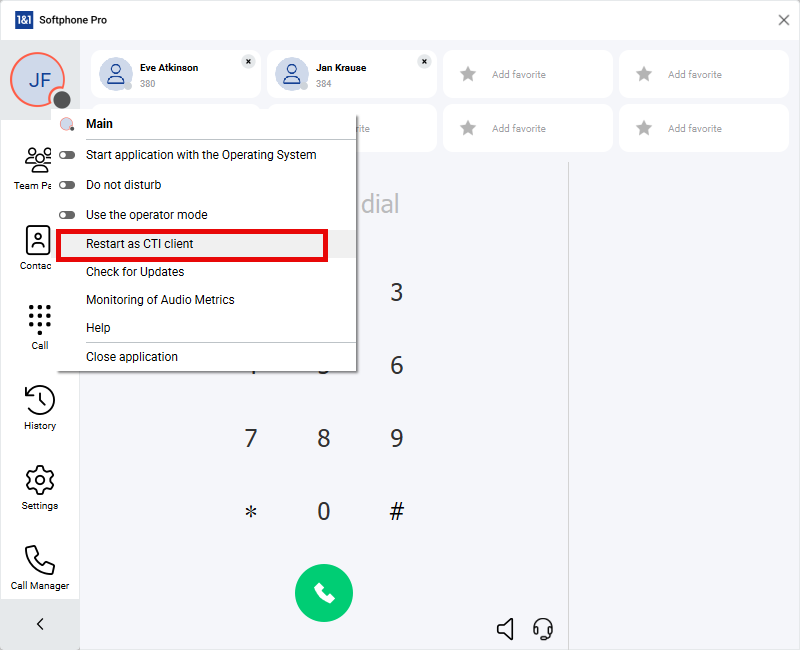 Restart in CTI mode (find more information under CTI mode / Softphone mode)