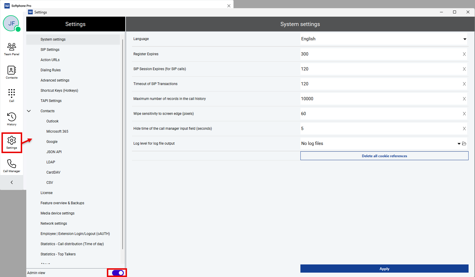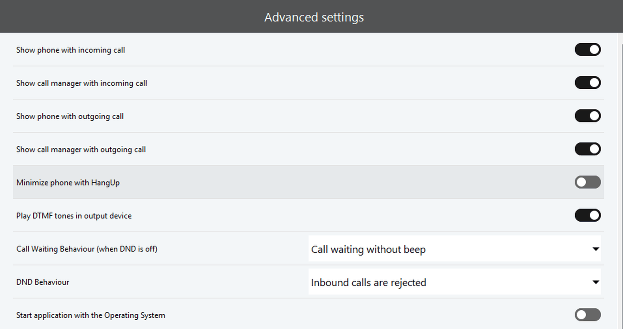 Start the application with the operating system (Softphone Pro is started automatically with Windows)