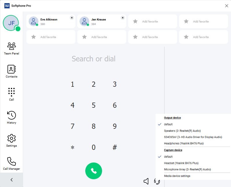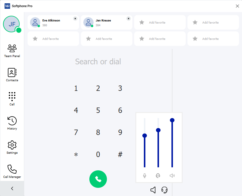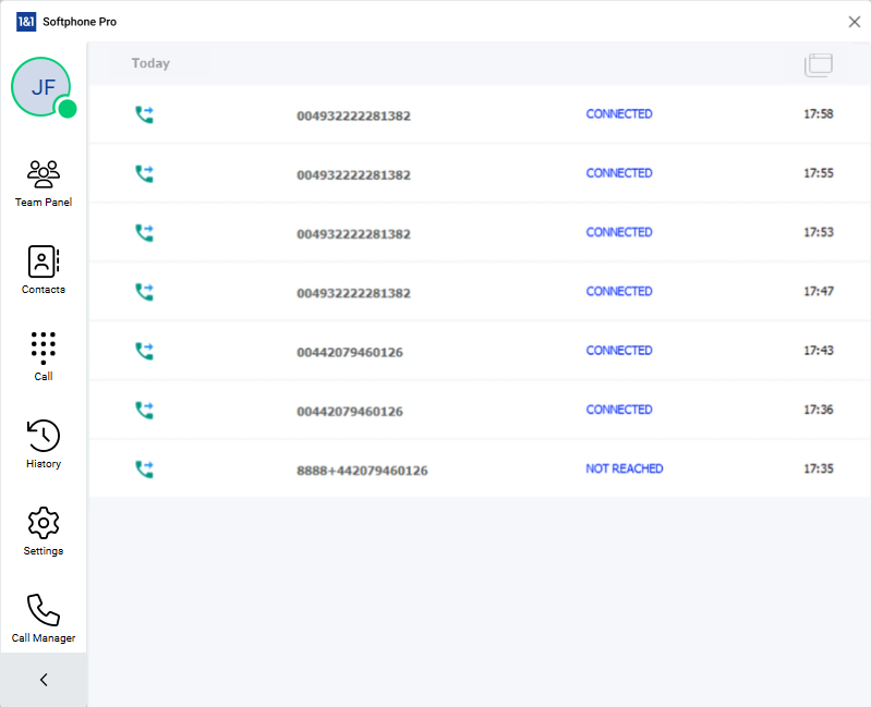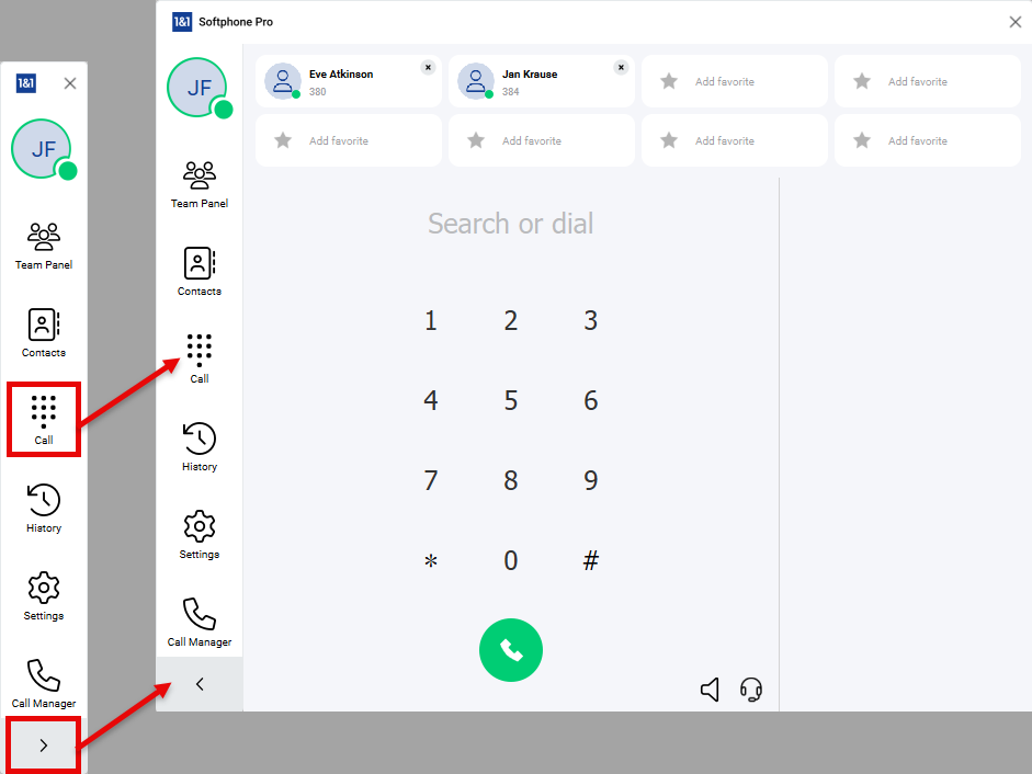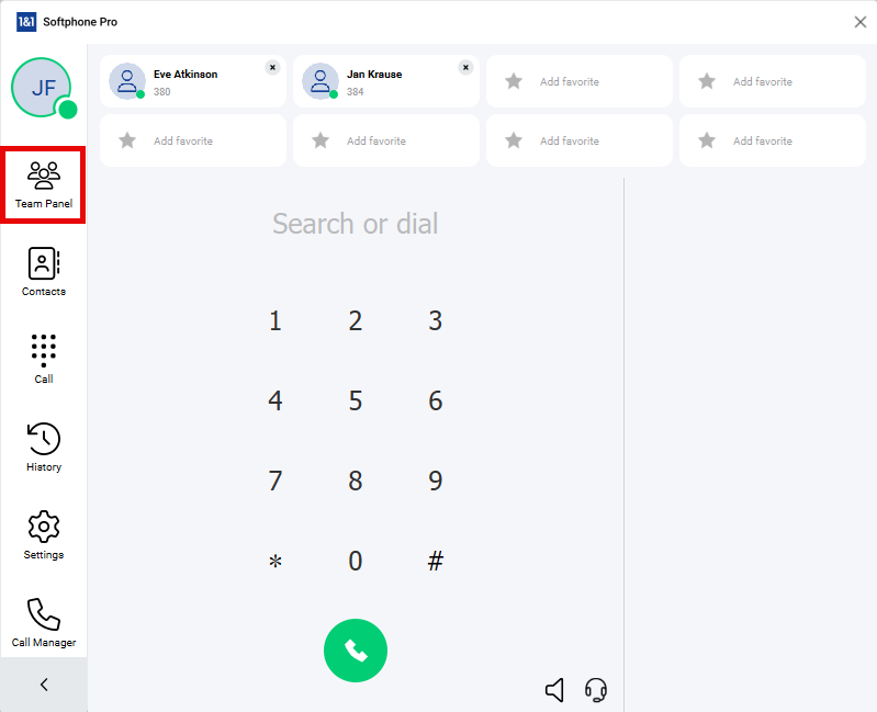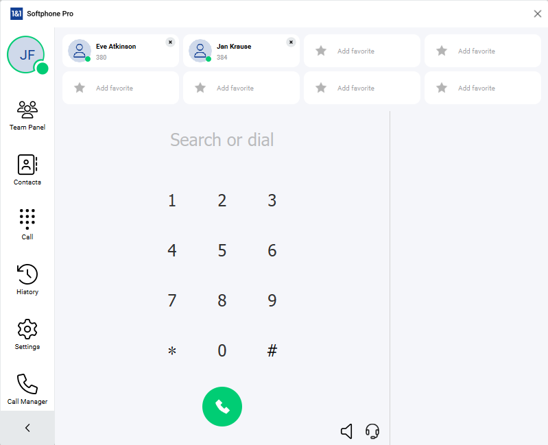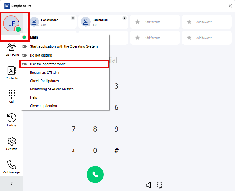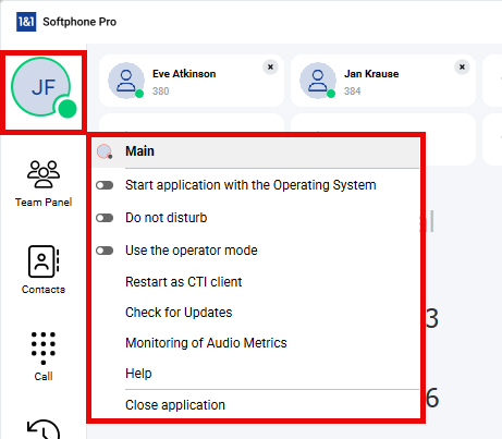 The user icon in the upper left-hand corner serves as a status indicator and shows you the connection between your telephone system and your softphone.