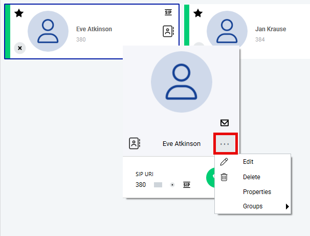 In addition, you can write an email to the contact or manage the contact. The contact origin is displayed via the symbol to the left of the name.