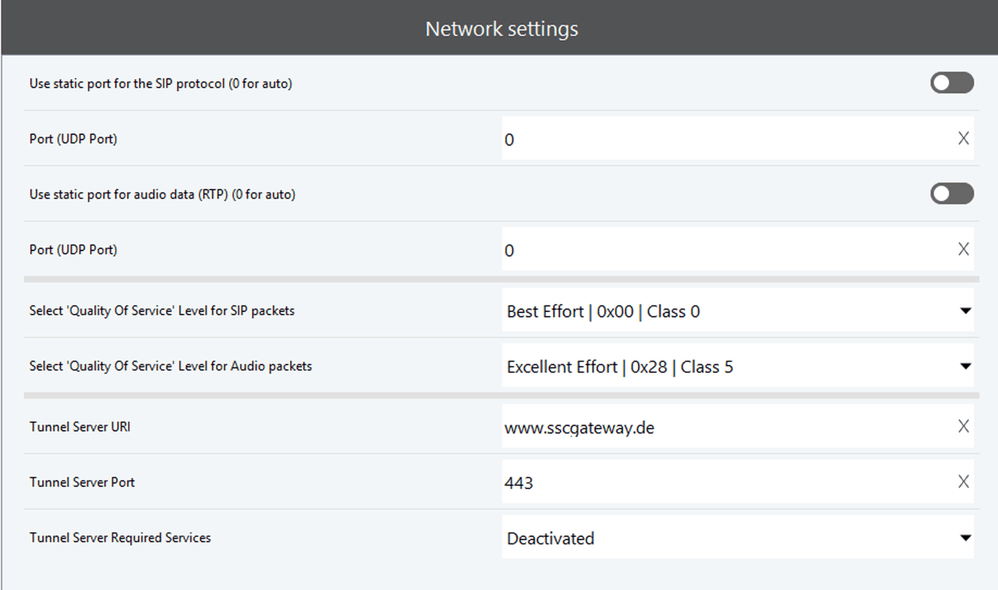 Use static port for audio data (RTP) (0=auto) | Please note firewall settings. |