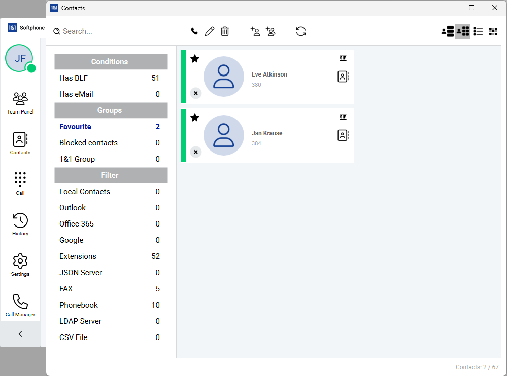 ⇒ The call manager appears at the bottom right edge of the screen. You can move it anywhere on the screen via drag & drop. The call manager forms the lower basis for call pop-ups for incoming or outgoing calls.